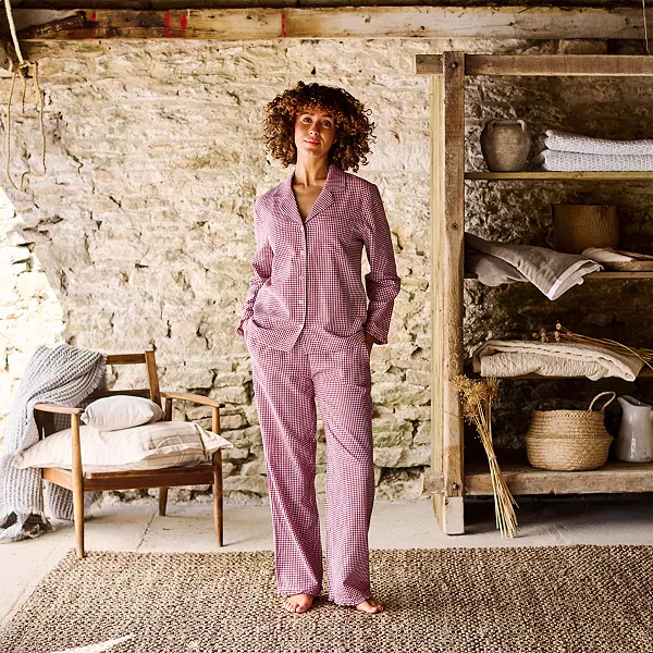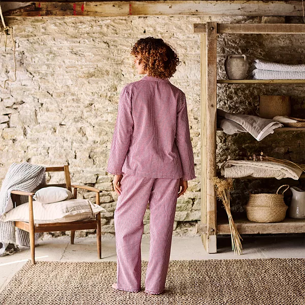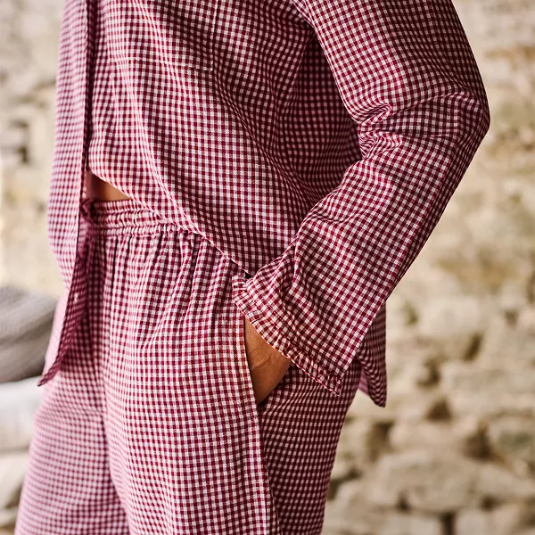 Бренд: Christy Цвет: красный Расслабьтесь в теплой, классической клетчатой пижаме. Полосатый узор цвета «мерло», окрашенный пряжей, придает ей нотку изысканности, а естественная, но при этом дышащая ткань обеспечивает мягкость и воздушность. Ее красота заключается в простоте искусно сотканного высококачественного хлопка с плотностью 200 нитей на дюйм, создающего вневременное и уютное ощущение.