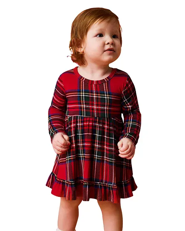Детское платье-боди в клетку с оборками - для малышек Posh Peanut, красный