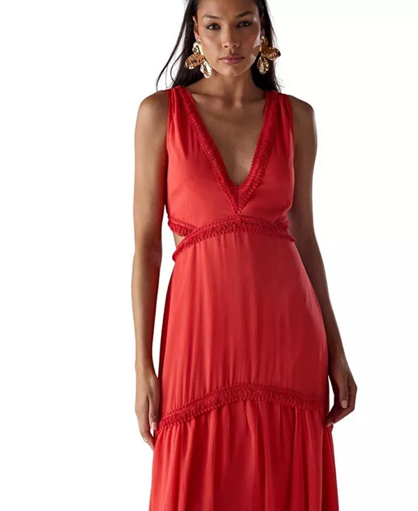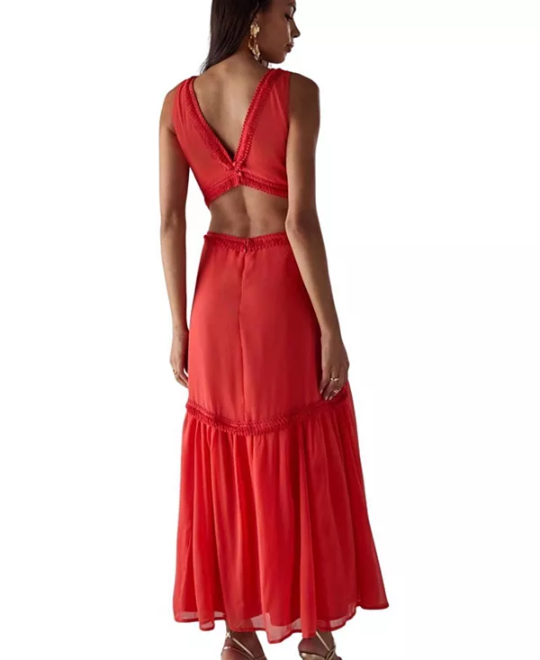 Длинное платье из шифона с бахромой и вырезами Warehouse, красный