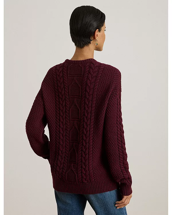 Хлопковый свитер с круглым вырезом и косами Ralph Lauren, красный