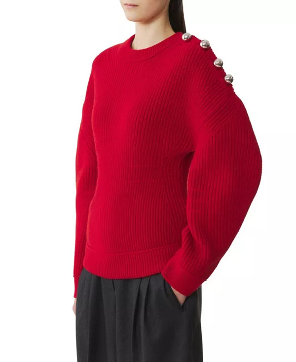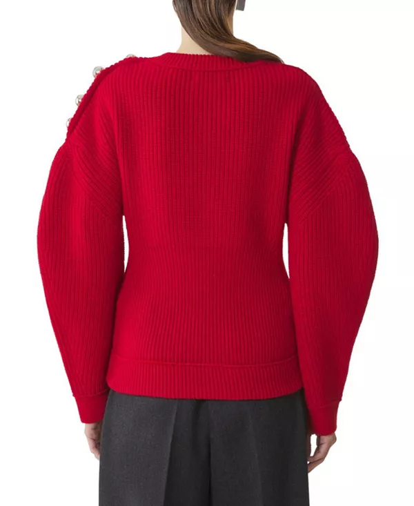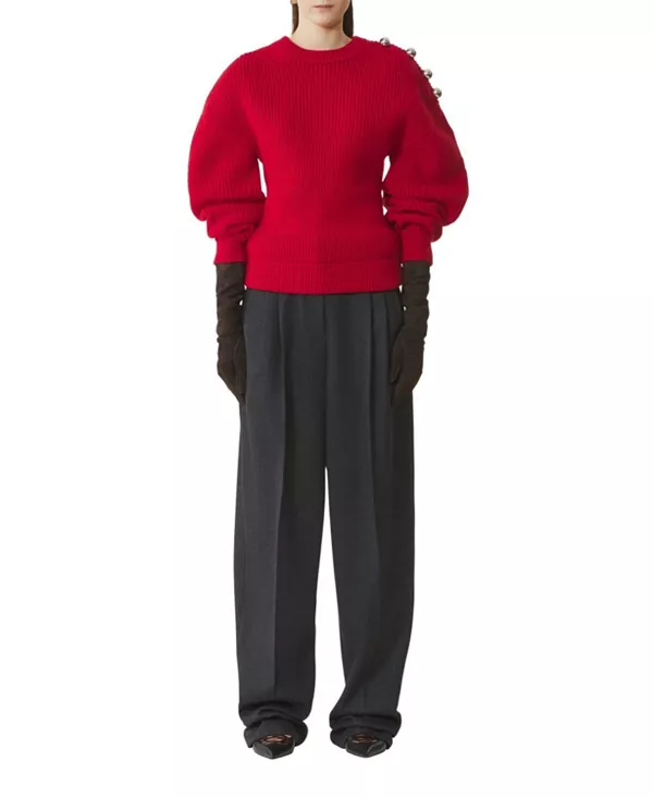 Шерстяной ребристый свитер Lanvin, красный