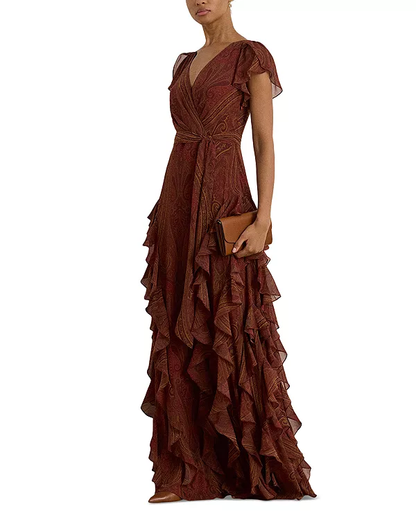 Платье из жоржета с оборками в стиле пейсли Ralph Lauren, красный