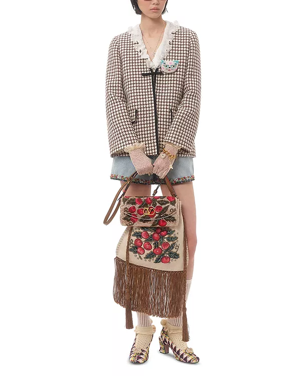 Сумка через плечо с верхней ручкой и бисерным логотипом. Valentino Garavani, красный 412 553₽