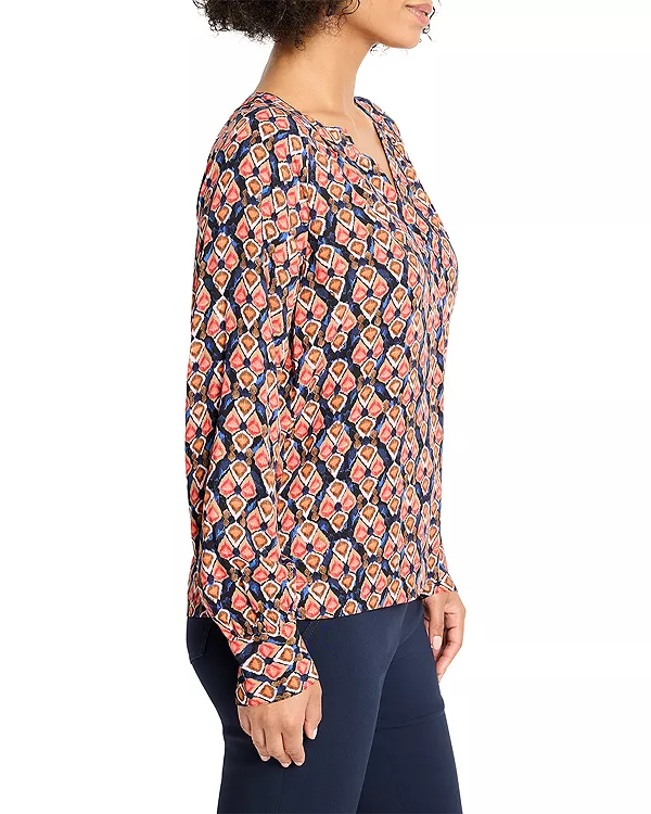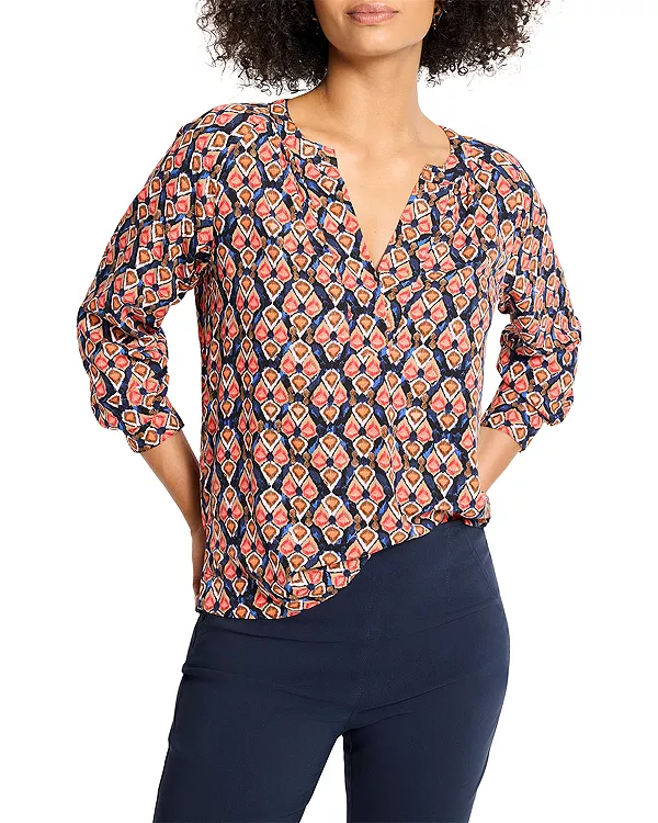 Бренд: Nic+Zoe Цвет: мультиколор Изящный, стильный и удобный в носке, этот красивый топ с принтом от NIC+ZOE вдохновлен мозаикой и ромбовидным узором, но с современным скандинавским акцентом: лаконичный, графичный и невероятно универсальный. Свободный силуэт выгодно подчеркивает фигуру, не обтягивая, а мягко собранный вырез горловины добавляет необходимую изюминку.