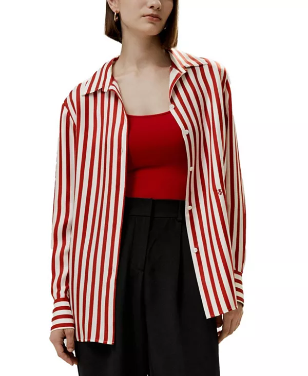 Шелковая рубашка в полоску «Амальфи» Lilysilk, красный