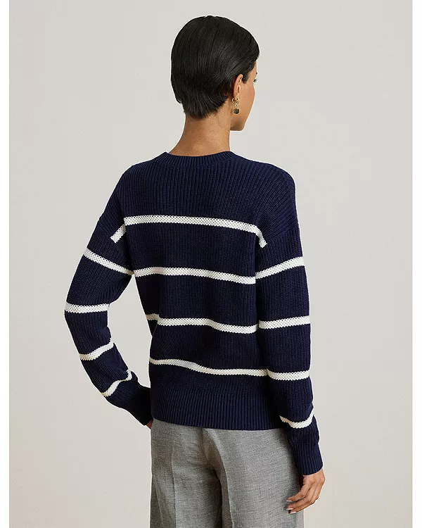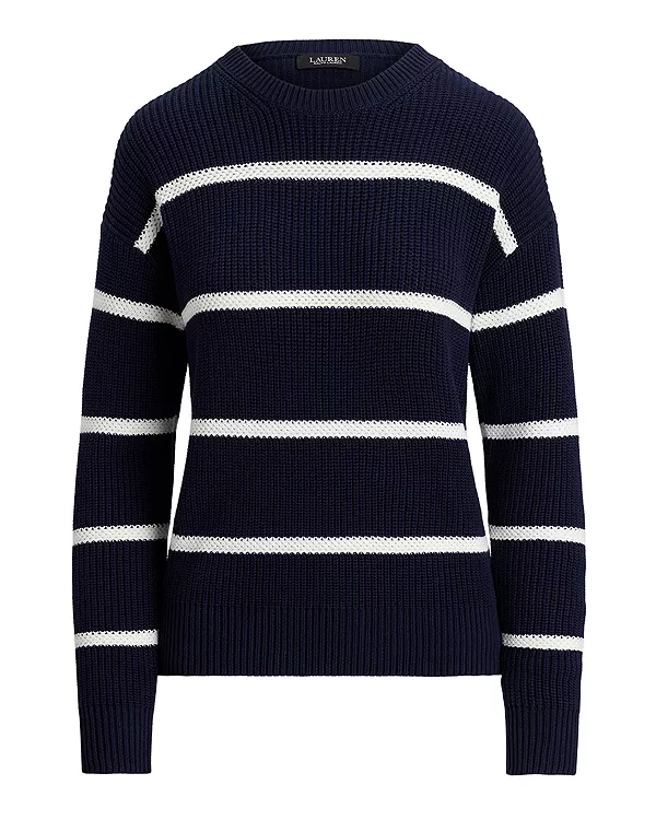Свободный силуэт, приспущенные плечи и ткань из чесаного хлопка придают полосатому свитеру с круглым вырезом от Lauren Ralph Lauren уютный вид, а ребристая вязка добавляет ему изысканности.