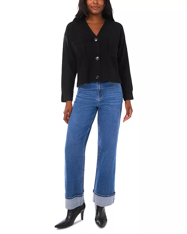Кардиган с V-образным вырезом и разрезом на манжетах 1.State, черный
