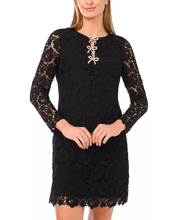 Платье с цветочным кружевом и бантом Cece, черный