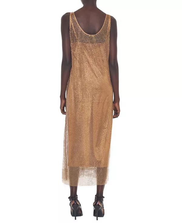 Бренд: As By Df Цвет: золотой Почувствуйте истинное блаженство в нашем платье Nadine. Гламурный силуэт-футляр длиной выше щиколотки, открытый круглый вырез и отсутствие рукавов. Платье-макси с безупречной подкладкой из шелковистого атласа на тонких бретелях, которые можно отстегнуть и носить отдельно. Сетчатая ткань, украшенная стразами, отделана вручную пайетками, которые красиво переливаются на свету. Носите его с подходящими металлическими туфлями на каблуках и эффектными украшениями. Наша приверженность принципам устойчивого развития: мы не используем пластик. Упаковка AS by DF изготовлена из 100% переработанных материалов и на 100% биоразлагаема. Размер: • Соответствует стандартному размеру, пожалуйста, выбирайте свой обычный размер • Приталенный • Макси длина • Рост модели 175 см, на ней американский размер S Ткань: • Основной материал: 96% полиэстер, 4% эластан • Подкладка: 95% полиэстер, 5% эластан Уход: • Только химчистка