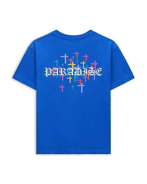 Графический рисунок "RtA" на левой стороне груди, графический рисунок "Paradise" на спине