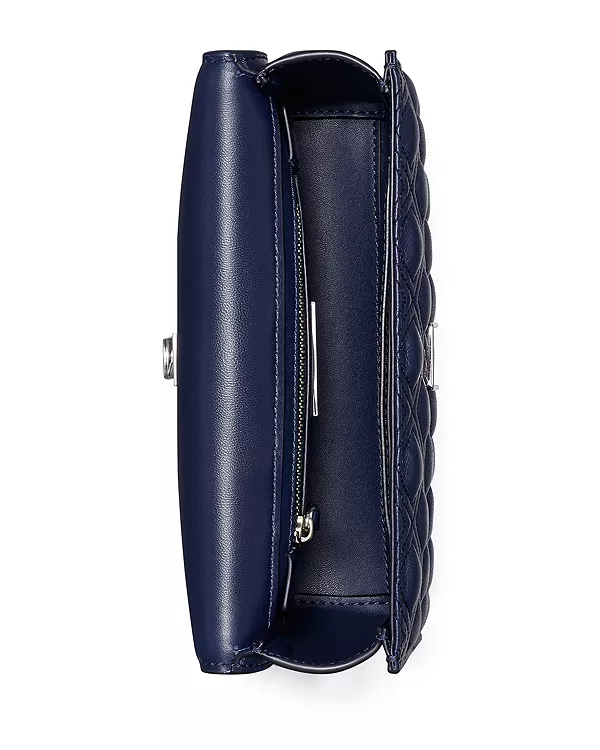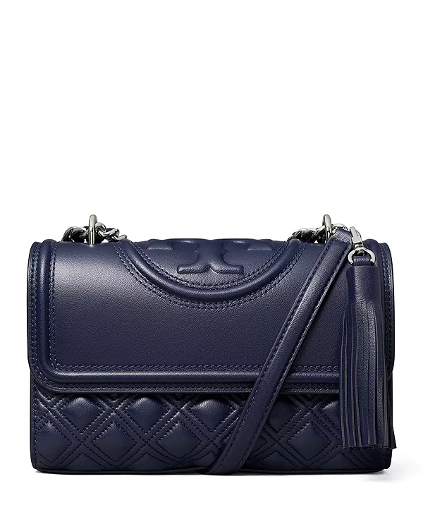 Маленькая стеганая кожаная сумка-трансформер Fleming через плечо Tory Burch, синий 47 102₽