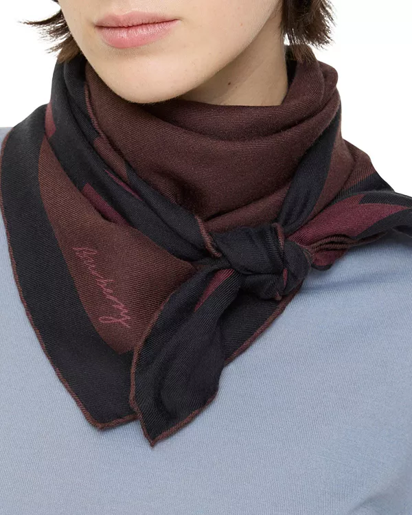 Квадратный шарф, изготовленный в Италии из кашемирового шелкового твила. Рисунок выполнен цифровым способом с использованием клетчатого узора Burberry в сезонном рубиново-красном цвете.