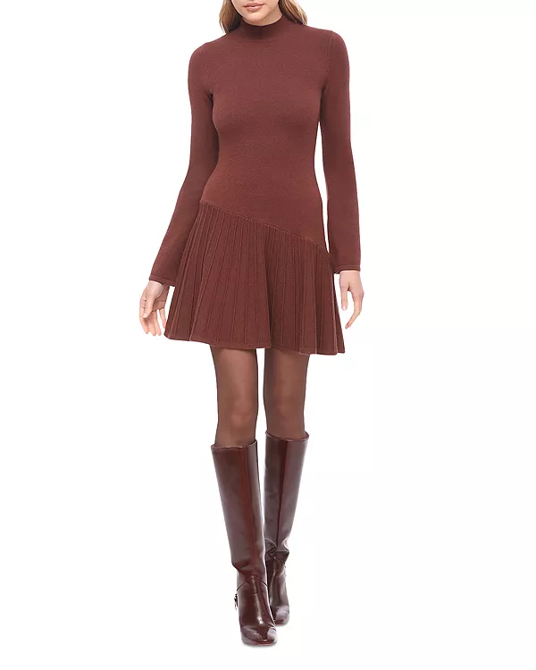 Вязаное мини-платье-свитер с высоким воротником Bagatelle, красный