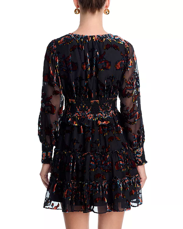 Мини-Платье из бархата с эффектом выгорания - эксклюзив Aqua, мультиколор