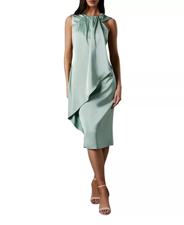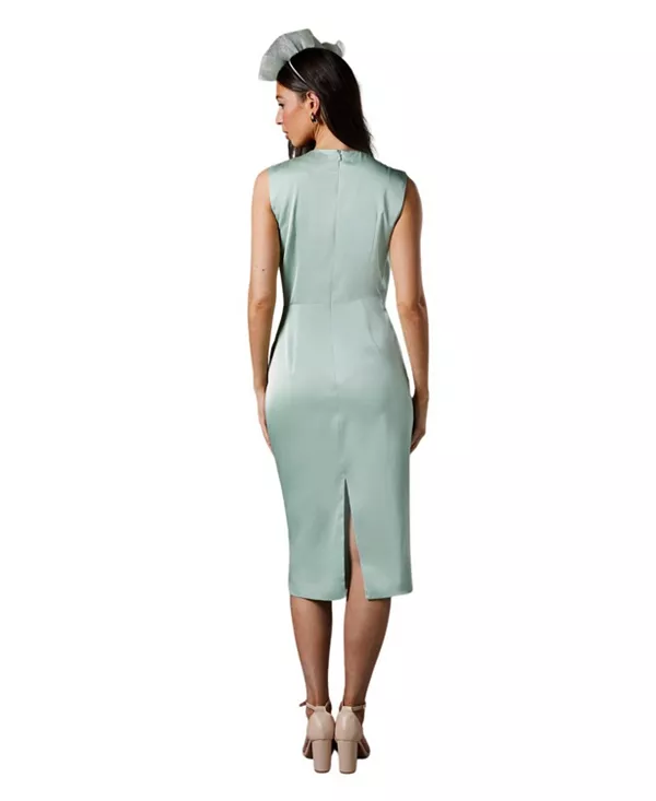 Платье миди без рукавов из атласа с оборками Coast, зеленый