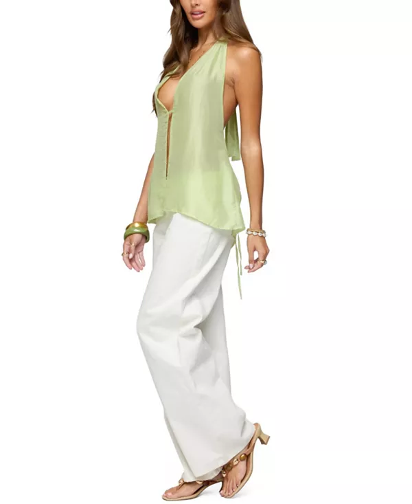Шелковистый топ с разрезом спереди и завязками на шее Edikted, зеленый