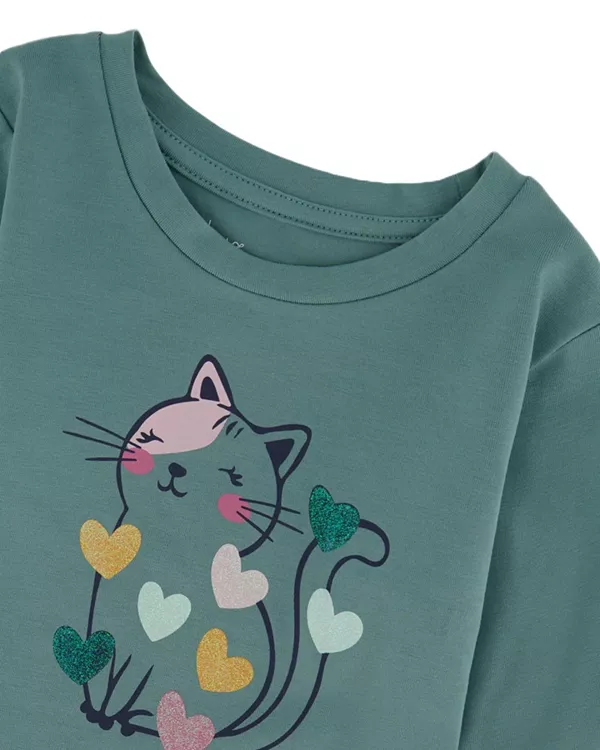 Бренд: Deux Par Deux Цвет: зеленый Добавьте немного очарования в гардероб вашего малыша с этой футболкой из органического хлопка золотисто-желтого цвета с кошкой! На футболке изображена игривая кошка в окружении ярких цветов, что делает ее идеальной для ношения в течение всего дня. Мягкая ткань из органического хлопка обеспечивает комфорт, а длинные рукава согреют вашего маленького искателя приключений в прохладные дни. Благодаря свободному крою и круглому вырезу, эта футболка станет веселым и удобным выбором для игр или прогулок. Сочетайте ее с любыми брюками из нашей коллекции «Котенок-сюрприз» для создания стильного, гармоничного образа!