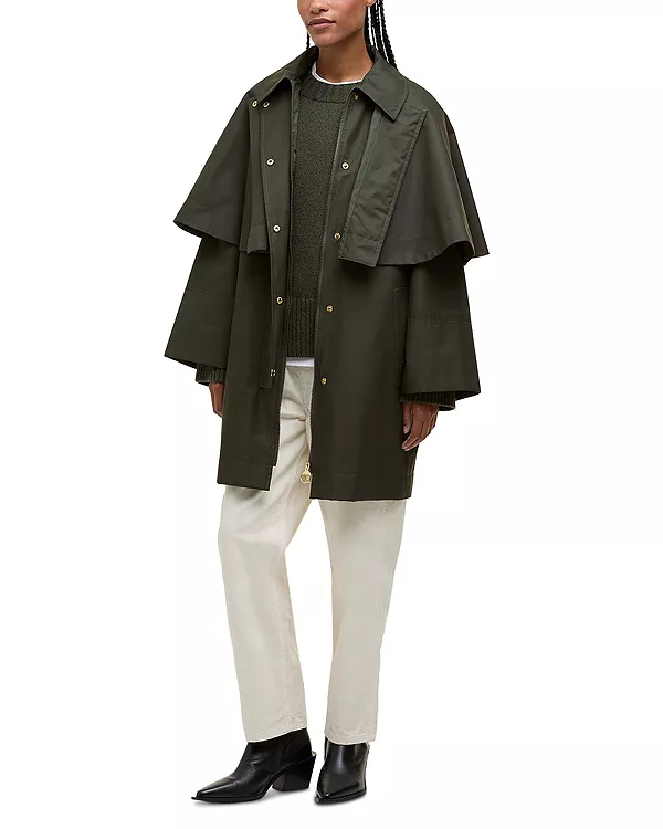 Двусторонняя застежка-молния спереди с большим кольцом-язычком и ветрозащитной планкой на кнопках