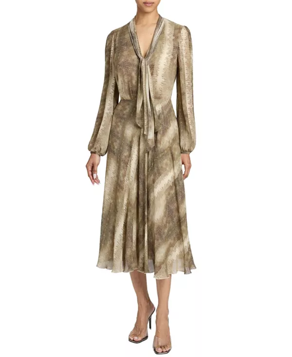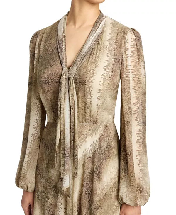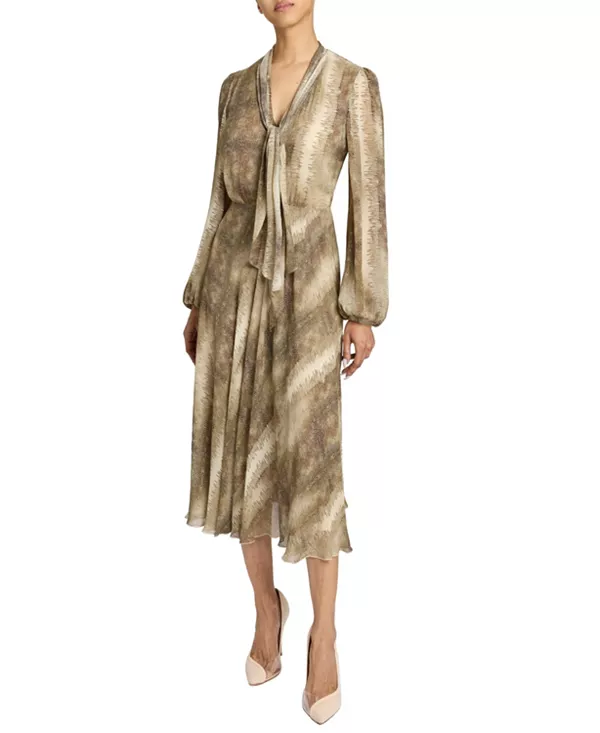 Платье-Миди из жоржета с принтом от Jenn, с завязками на воротнике. Santorelli, бежевый