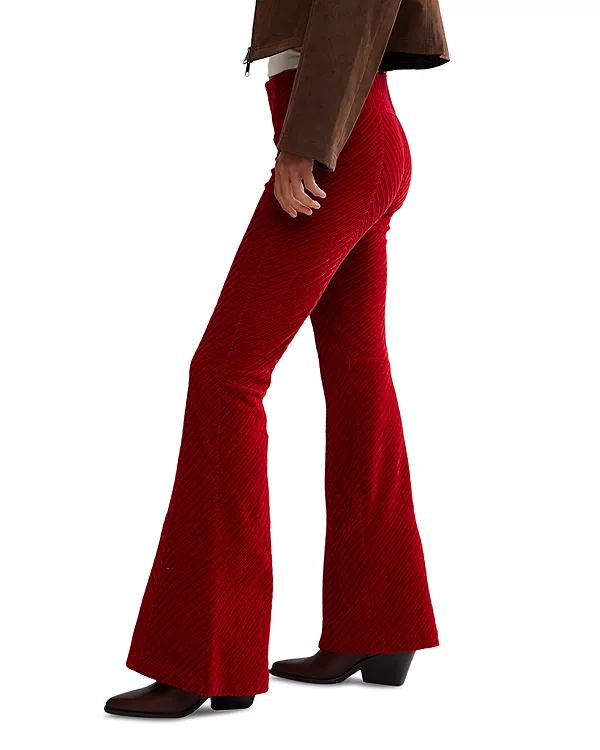 Эти брюки, представляющие собой вариацию культового силуэта Penny от Free People, отличаются удобным дизайном, расклешенным кроем, подчеркивающим фигуру, и бархатной отделкой в виде шевронов, придающей им дополнительную глубину.