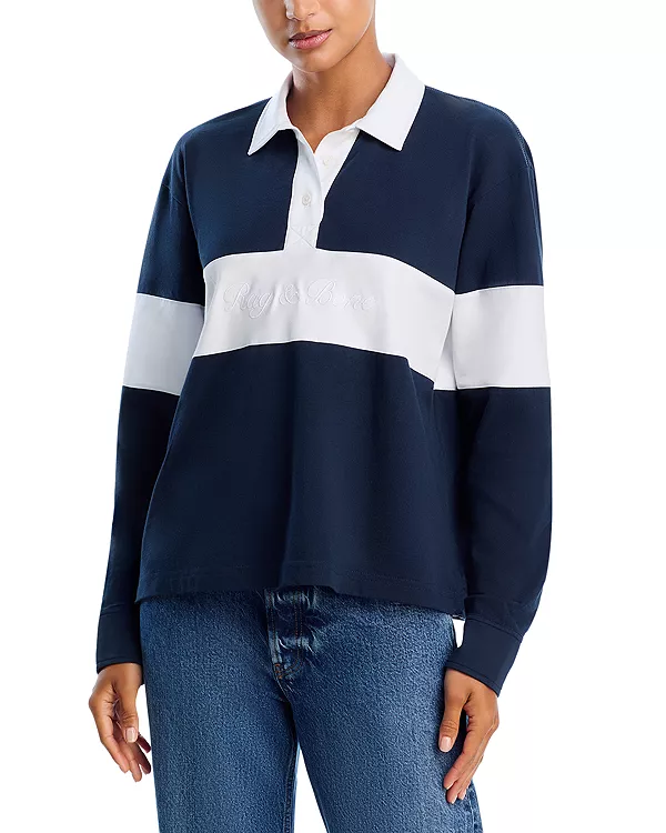 Рубашка-Поло для регби с длинным рукавом Rag & Bone, синий