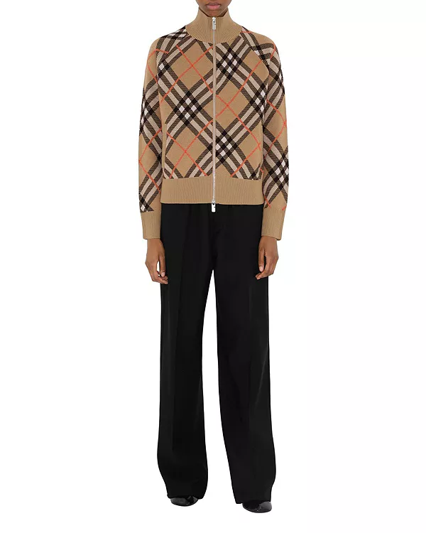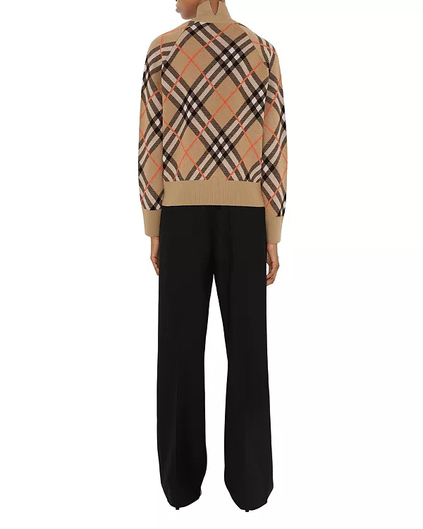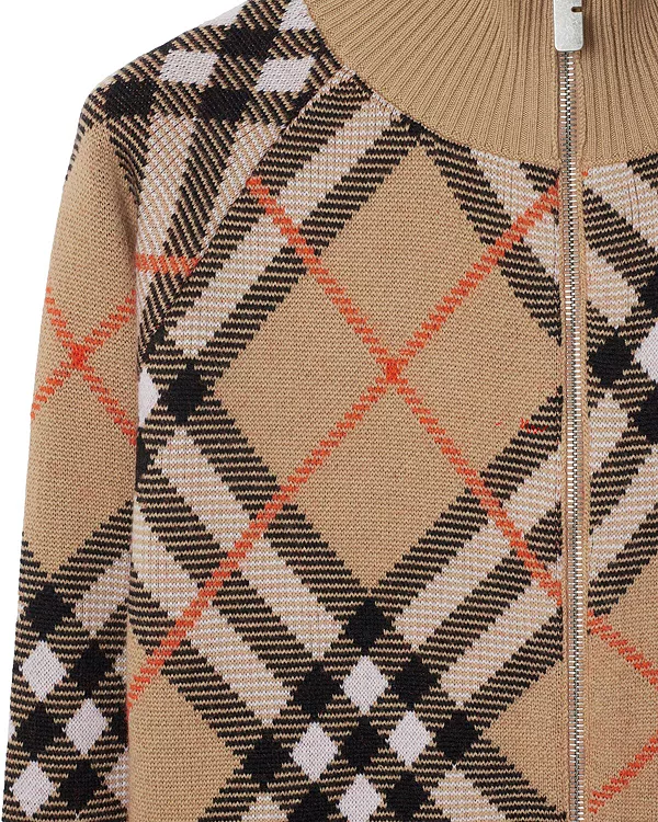 Спортивная куртка из смеси шерсти и мохера, связанная в клетку Burberry. Воротник-стойка, свободный крой. Часть коллекции Burberry Classics - основы гардероба с уникальным стилем Burberry.