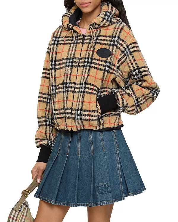 Укороченная клетчатая флисовая куртка с капюшоном «Фиона» Burberry, бежевый 171 939₽