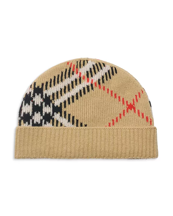 Шапка-Бини из кашемировой смеси в клетку Burberry, бежевый