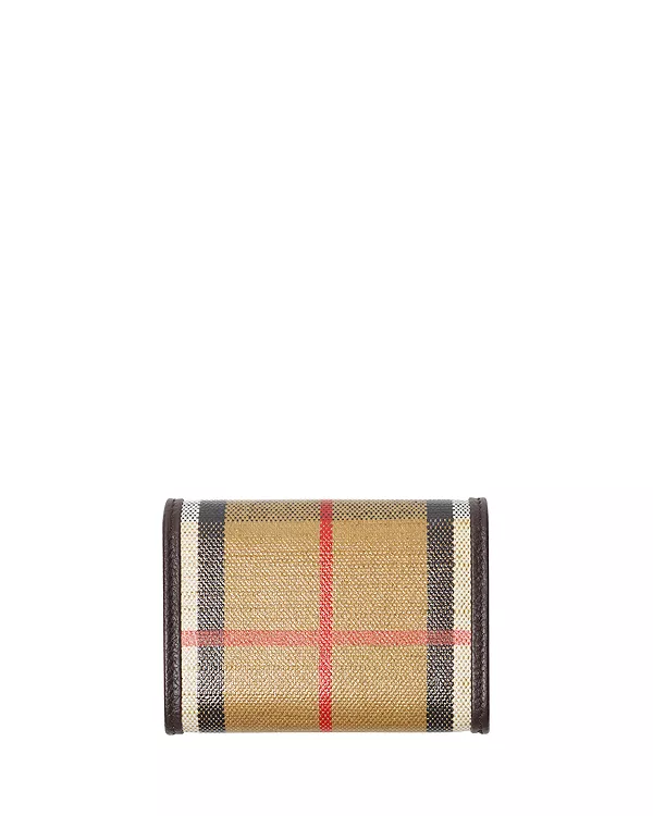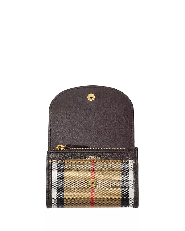 Кошелек для монет, изготовленный из смеси хлопка и льна, отделанный гладкой телячьей кожей. Ткань жаккардового плетения с фирменным клетчатым узором Burberry имеет покрытие, вдохновленное одеждой для дождливой погоды и отдыхом на природе. Дизайн дополнен фирменным знаком Burberry Knight, архивным мотивом, впервые появившимся на сумках Burberry в 1980-х годах.