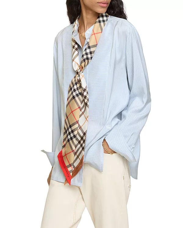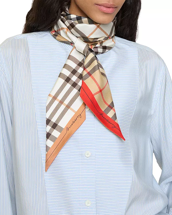 Узкий шелковый шарф в контрастную клетку Burberry, бежевый 32 062₽