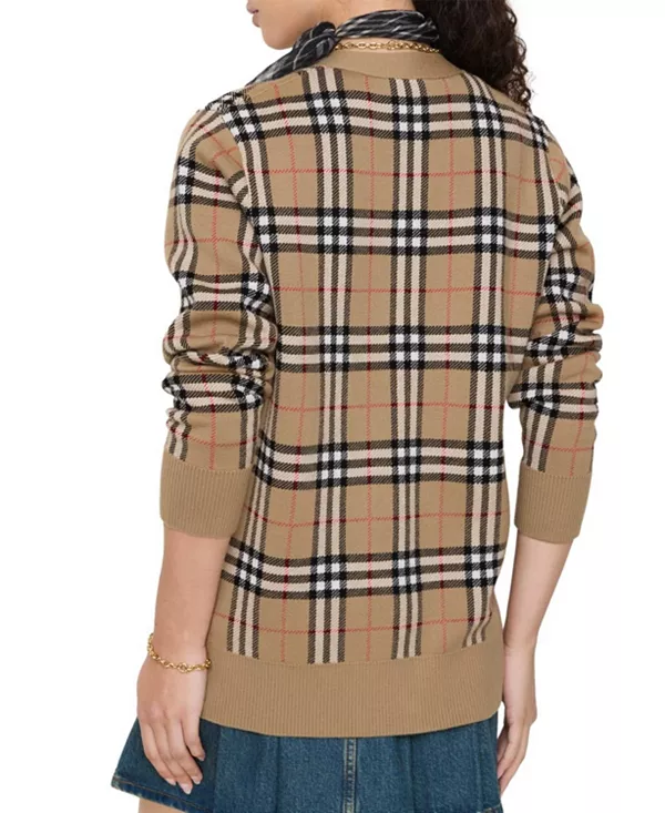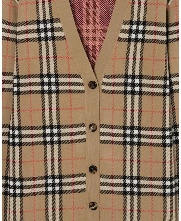 Кардиган из легкой хлопковой шерсти с добавлением эластана, свободного кроя. Дизайн выполнен жаккардовой вязкой с фирменным клетчатым узором Burberry в песочно-бежевом цвете.