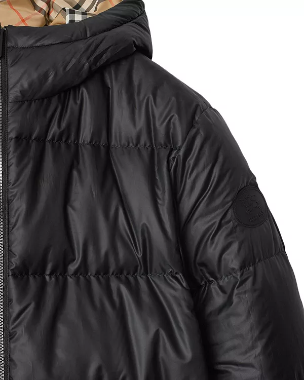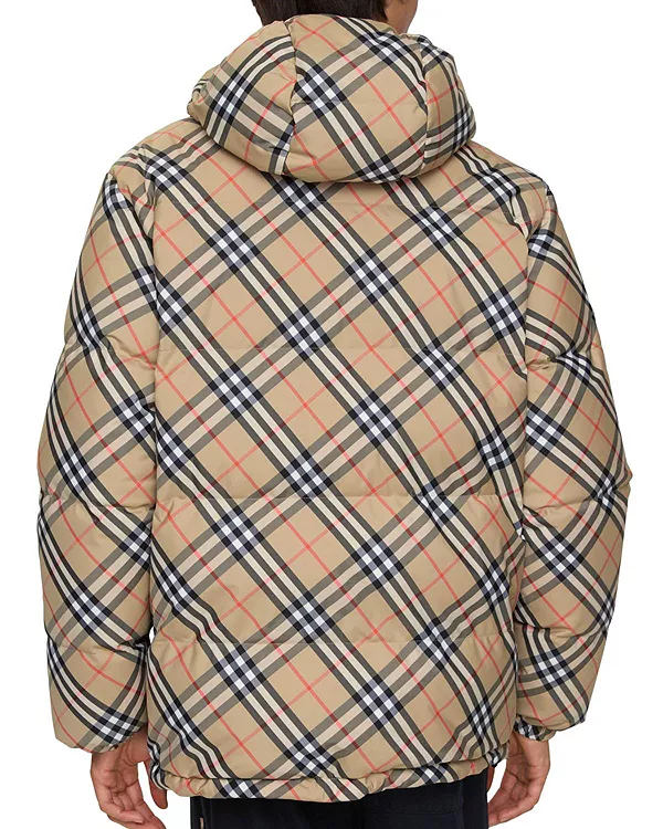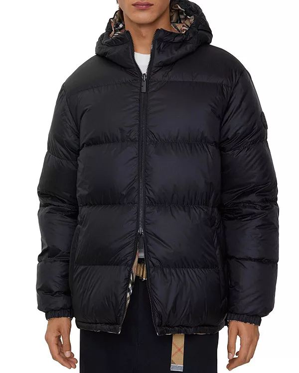 Бренд: Burberry Цвет: мультиколор Пуховая куртка с капюшоном, наполненная гусиным пухом и перьями, свободного кроя. Двусторонний дизайн: клетчатый узор Burberry сменяется однотонным нейлоном, а на ней нанесена аппликация с фирменным логотипом Knight - архивным мотивом, впервые появившимся на сумках Burberry в 1980-х годах.