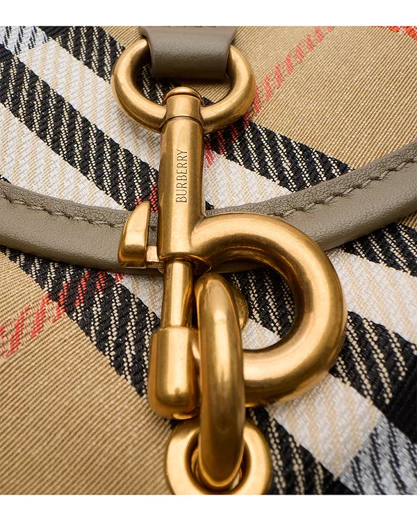 Мягкая, структурированная сумка-мессенджер B Clip изготовлена в Италии из водоотталкивающей хлопковой смеси с клетчатым узором Burberry и имеет подкладку из ткани того же цвета. Изогнутый силуэт получил свое название благодаря выгравированному логотипу b на переднем кармане. Носите на плече или через плечо с помощью регулируемого ремня.