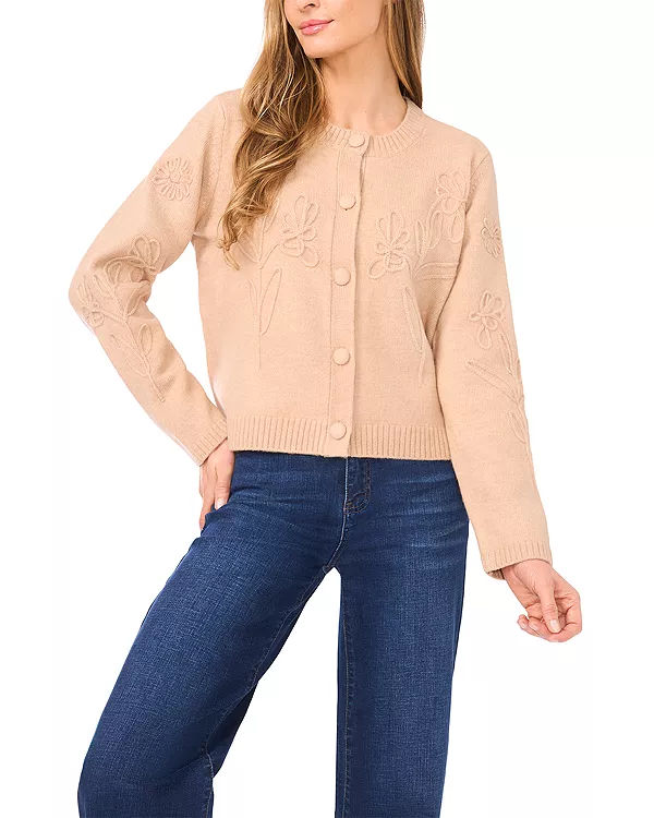 Кардиган с цветочной вышивкой Cece, бежевый