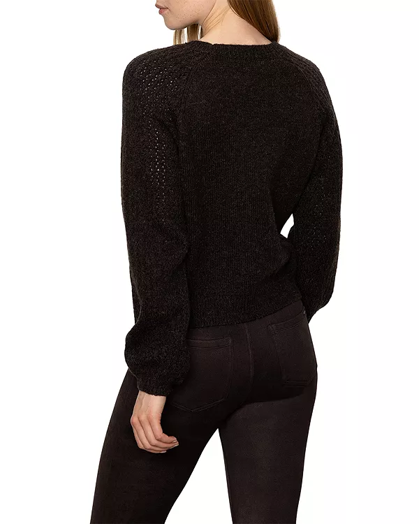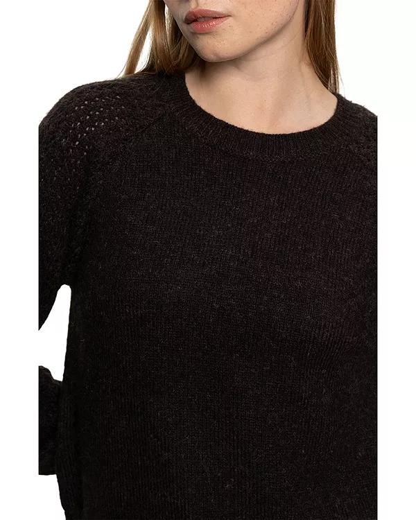Рукава ажурной вязки, ребристый воротник, манжеты и нижний край