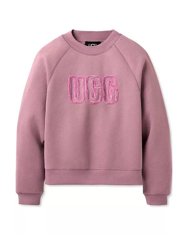 Свитшот UGG Logo Crewneck - это классическая повседневная модель, изготовленная из мягкой хлопковой смеси, с рукавами реглан и графическим логотипом UGG из синели.