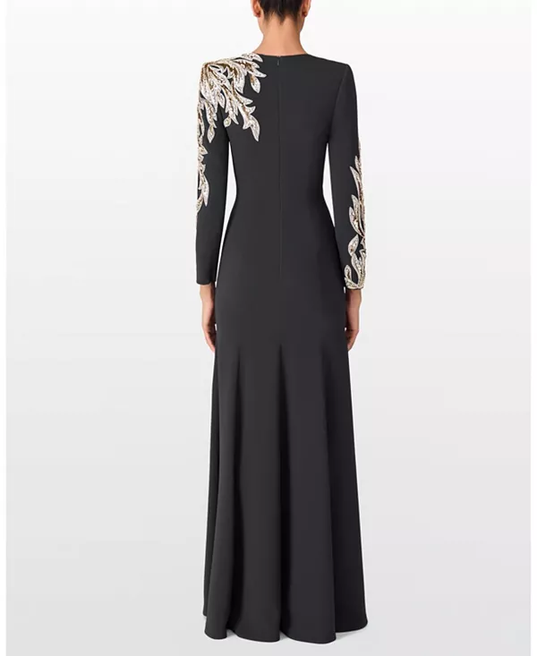 Бренд: Jenny Packham Цвет: серый Это платье, украшенное замысловатой вышивкой на плечах и рукавах, представляет собой изысканный вариант вечернего наряда. Четкий, приталенный силуэт призван подчеркнуть достоинства фигуры, сохраняя при этом ощущение легкости и уверенности. Длинные рукава и подол до пола добавляют нотку формальности. Идеально подходит для торжественных ужинов, церемоний награждения или элегантных приемов.