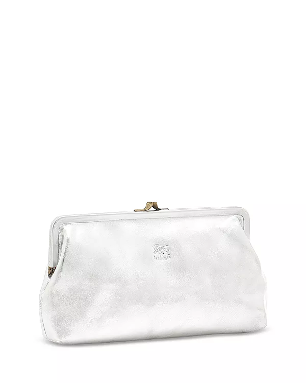 Классический кожаный клатч Manuela Il Bisonte, серебряный