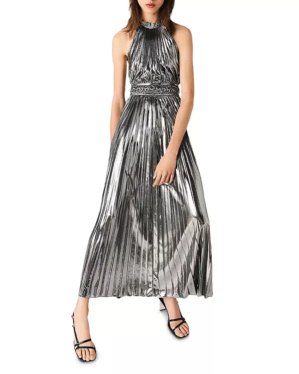 Длинное платье с плиссировкой Maje, серебряный 29 918₽