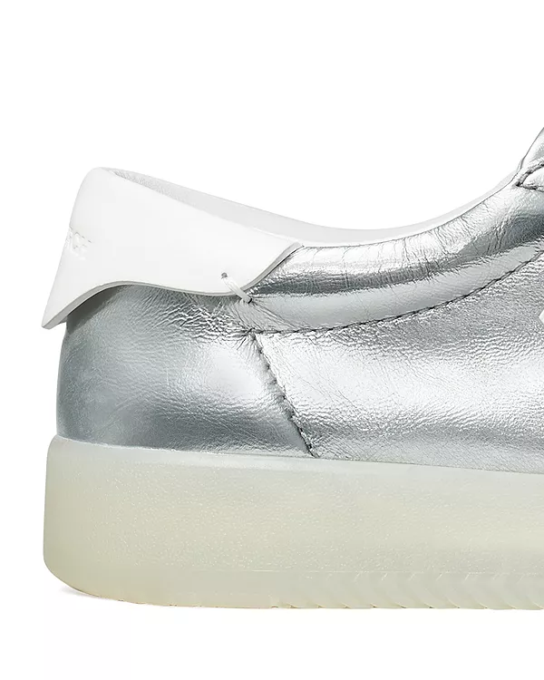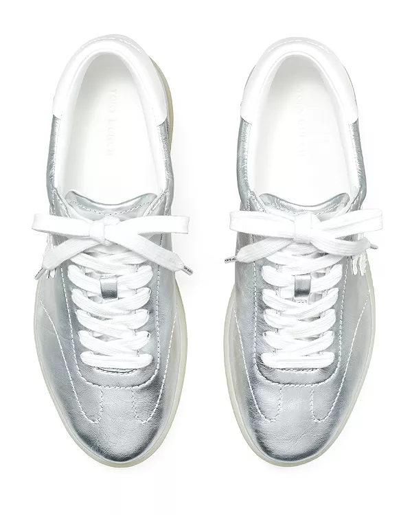 Бренд: Tory Burch Цвет: серебряный Вдохновленные мифологией феникса, эти новые кроссовки Tory Burch акцентируют внимание на технических деталях, которые делают их незаменимым элементом повседневного гардероба. Изготовленные из замши без подкладки для легкости и минималистичного дизайна, они имеют тональную строчку, подчеркивающую обтекаемую форму, а полупрозрачная резиновая подошва демонстрирует внутреннюю конструкцию обуви. Завершает образ вышитая буква Double T и контрастная задняя петля.