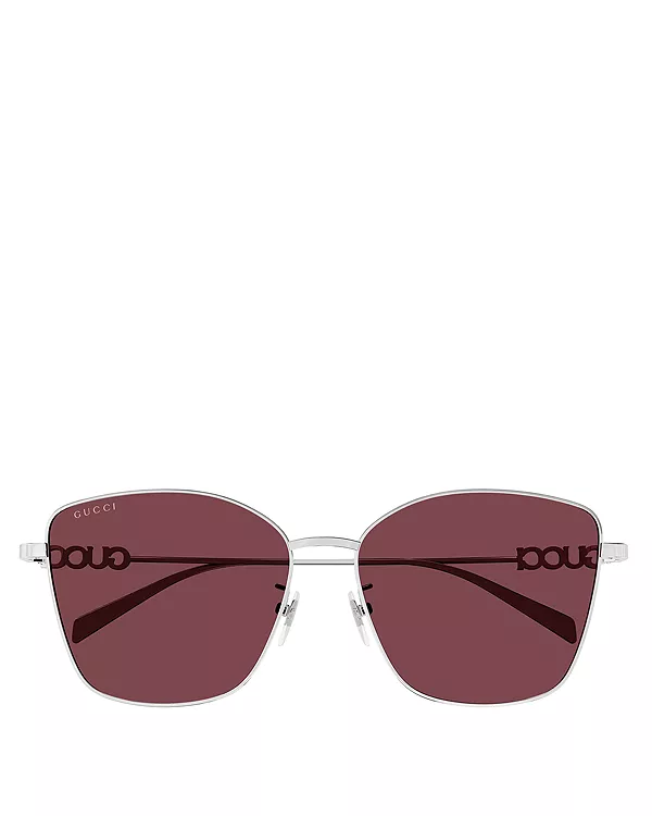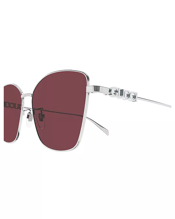 Солнцезащитные очки Block Butterfly, 60 мм Gucci, серебряный