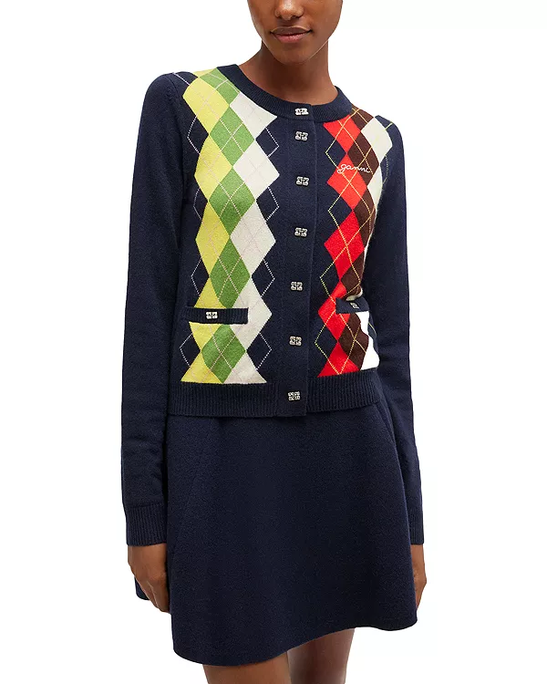 Кардиган из шерсти и кашемира с ромбовидным узором Ganni, мультиколор