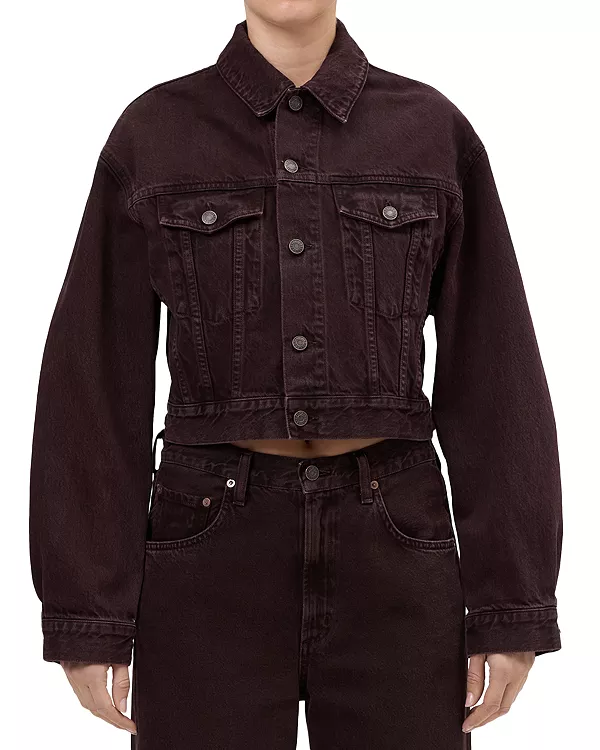 ОСОБЕННОСТИ Куртка Radley - это укороченная, структурированная версия классической джинсовой куртки-тракера. Выполненная в насыщенном виноградном оттенке с едва заметными коричневыми полутонами, эта жесткая, неэластичная джинсовая модель имеет выраженную талию и застежку на пуговицах спереди.