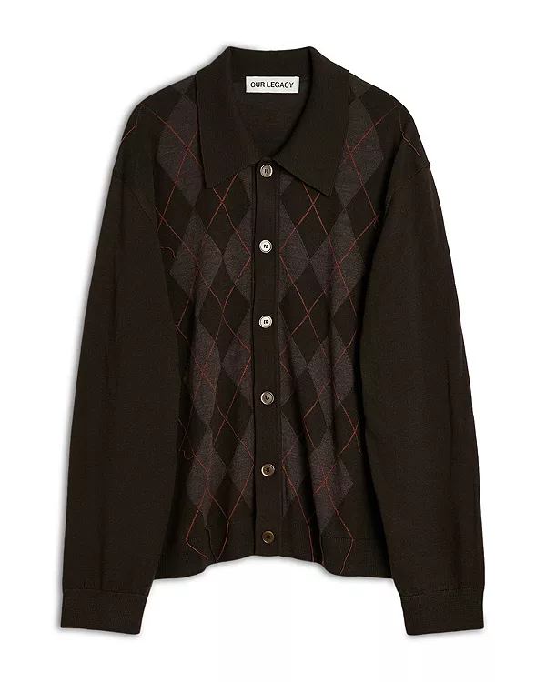Кардиган в ромбик для паба Our Legacy, коричневый