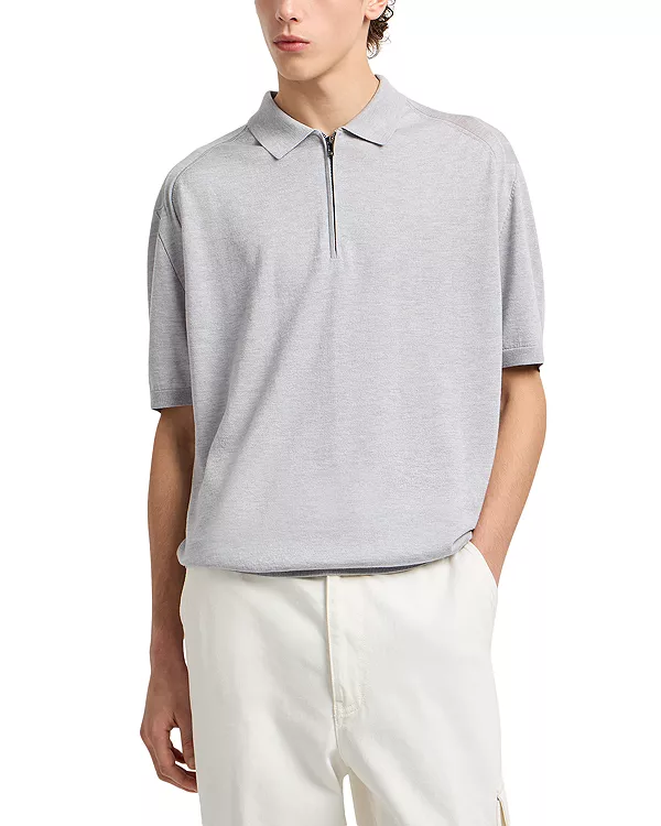 Поло на молнии стандартного кроя, вязаное. Emporio Armani, серый 26 738₽