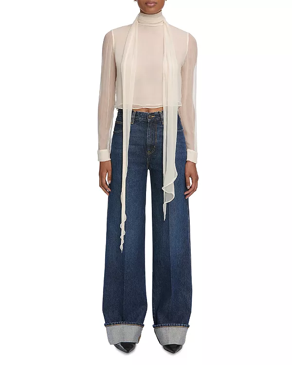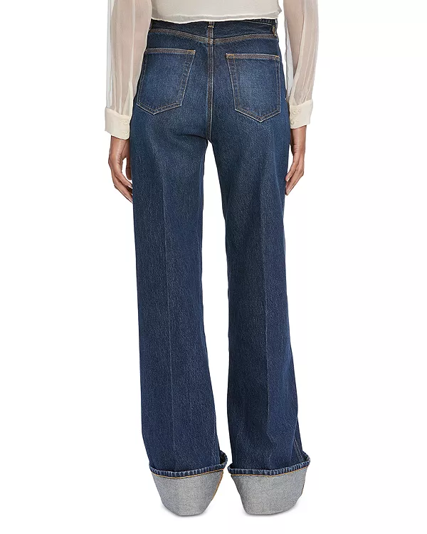 Джинсы с широкими штанинами и подворотами от Sencer Frame, синий