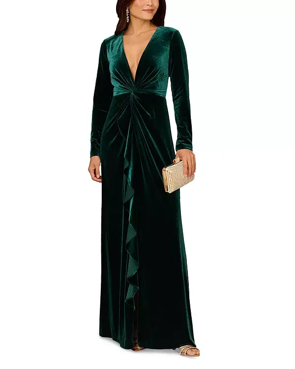 Бархатное платье с перекрученными нитями Aidan Mattox, зеленый 33 872₽