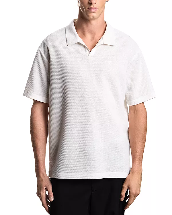 Шерстяная рубашка-поло с открытым воротником Emporio Armani, белый