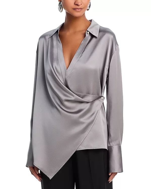 Шелковая свободная рубашка-халат Helmut Lang, серый 34 256₽