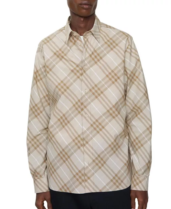 Рубашка с длинными рукавами из хлопка с клетчатым узором Burberry. Свободный крой.